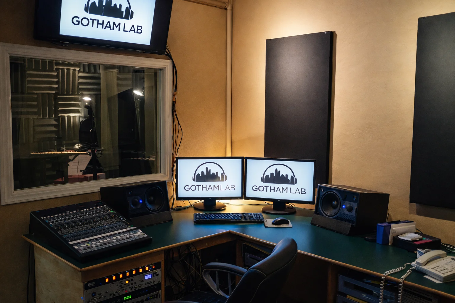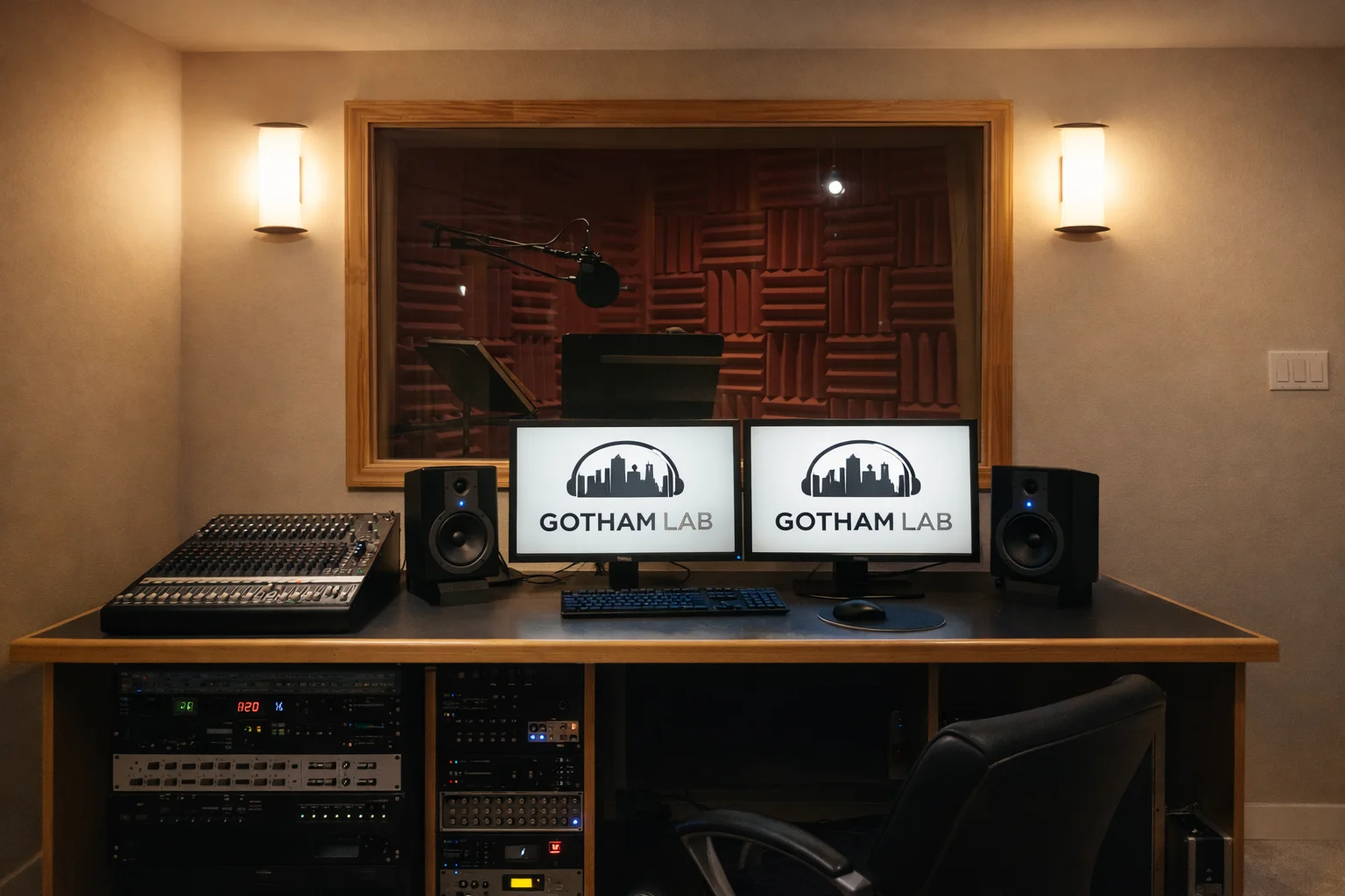 Gotham Lab’s in-house recording studio in Midtown Manhattan is equipped with industry-standard professional audio production tools — Pro Tools, Logic Pro, and Vegas Pro — alongside top-tier microphones, preamps, acoustic treatment, and monitoring systems that deliver the pristine broadcast-quality audio our clients require for film, television, streaming, and international distribution.